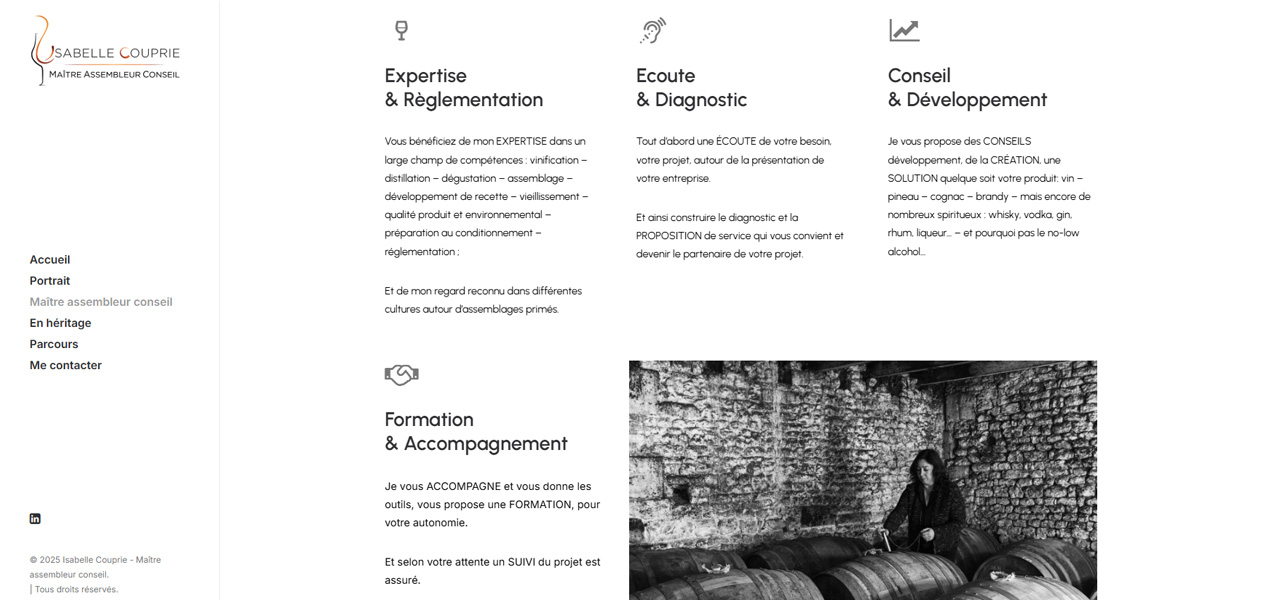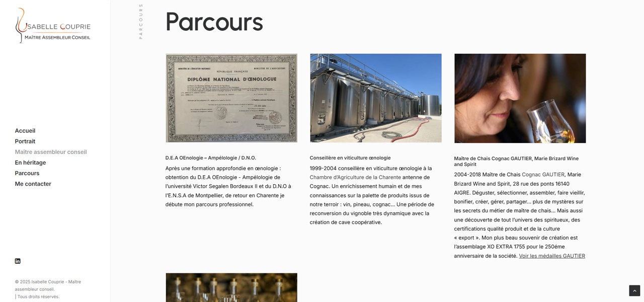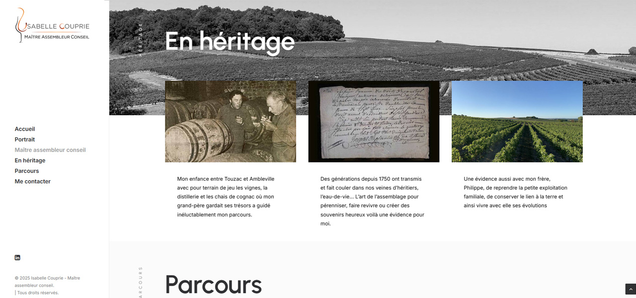 Cela a été un plaisir de collaborer avec une passionnée comme Isabelle. Son expérience respire l’Histoire du cognac, le poids de l’héritage que cela impose. Maître dans son domaine, nous avons su lui apporter notre expertise digitale pour faire exister son univers sur la toile.